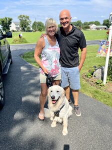 Meet super sweet Goose (born April ’21), who came to Goldheart recently from a loving home that wanted a soft landing, where he would have his own yard, more adventures, other pups to play with, opportunities to swim, and humans that could dedicate more time to him. Yes, it certainly broke their hearts to let him go, but wanting the best for him, we are so happy they turned to GoldHeart. It is clear to us already, that they put in so much work, getting Goose through all the major puppy milestones. He was placed in a fabulous approved GoldHeart FTA home that has given Goose that requested soft landing, lots of opportunities to grow, socialize, and work on overcoming some of the fears he has yet to conquer (some select loud outside noises). His forever home absolutely loves their new addition, and made the adoption official on 8-1-2022. As you can see, this boy is living the dream!