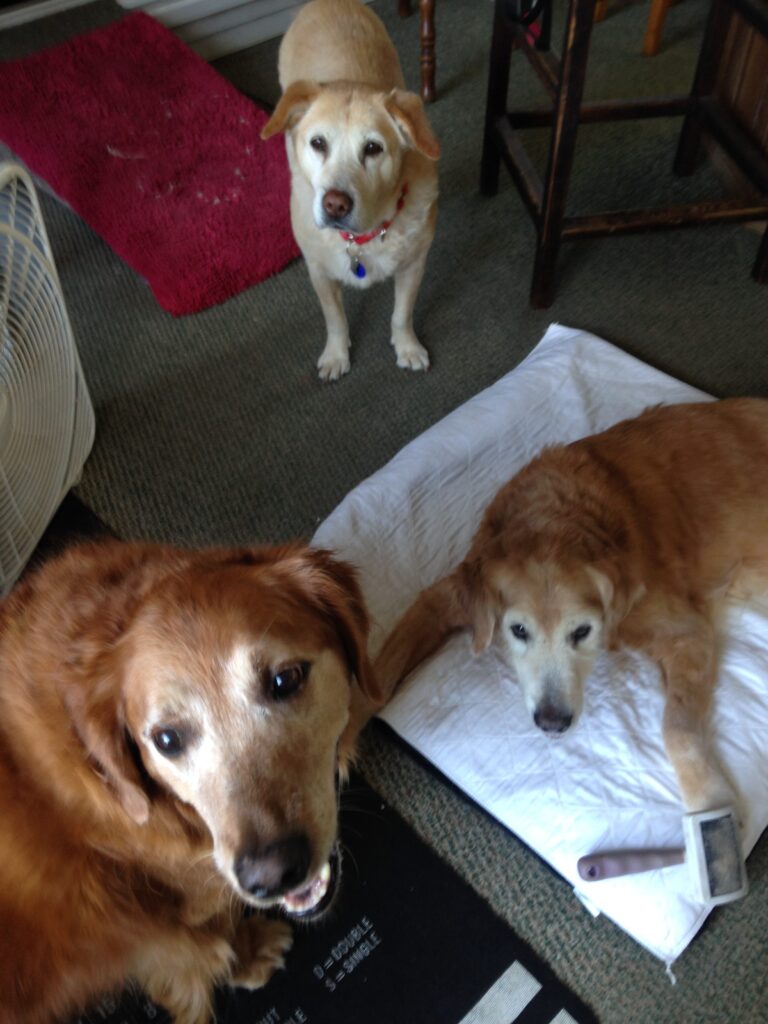 Ever since his arrival, Teddy has been living life to the fullest – loving his yard and walks with his fur-sibs (as of late this was just going to the mailbox and back – but he expected to make the trip every day). He loved to go out and stand in the middle of the yard and bark — as if to announce…Hey world, Teddy is out. He loved road trips to see family and camping trips. Earlier in his life he did not get around other dogs much, and we were sure to remedy that. He loved trying to play – especially with Roameo, and even got a girlfriend (another GH rescue – lab mix we just adopted for his 17th Birthday). His Heart, despite a leaky valve and grade 5-6 murmur, was still going strong, his faculties were perfect and his appetite was still there to his last minute (did I hear treat?). He would bark any time he needed one of us to help him-up, yoga mats became our carpet of choice for his mobility, and he still took his nightly strolls whimpering and walking around the house surveying his kingdom — “Teddy on patrol” was music to warm our souls.